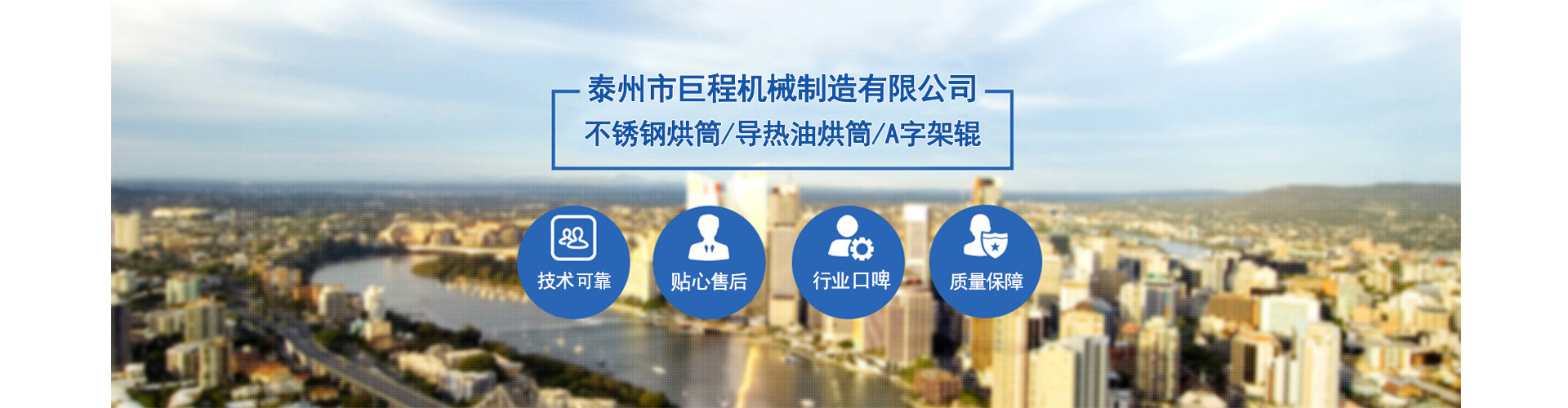泰州市巨程機(jī)械制造有限公司 泰州市巨程機(jī)械制造有限公司泰州市巨程機(jī)械制造有限公司是一個專業(yè)生產(chǎn)不銹鋼烘筒、導(dǎo)熱油烘筒、雙層冷水輥、A字架輥、染整設(shè)備等產(chǎn)品的機(jī)械公司。我公司注重產(chǎn)品質(zhì)量,講求企業(yè)信譽(yù)。我公司重點(diǎn)在于內(nèi)部管理,努力提高產(chǎn)品質(zhì)量,強(qiáng)化全體員工的服務(wù)意識,形成了一套我廠的用戶定期回訪制度,積極搜集廣大用戶在使用我廠設(shè)備過程中反饋回的各種信息,有針對性的組織人員進(jìn)行專項(xiàng)攻關(guān)